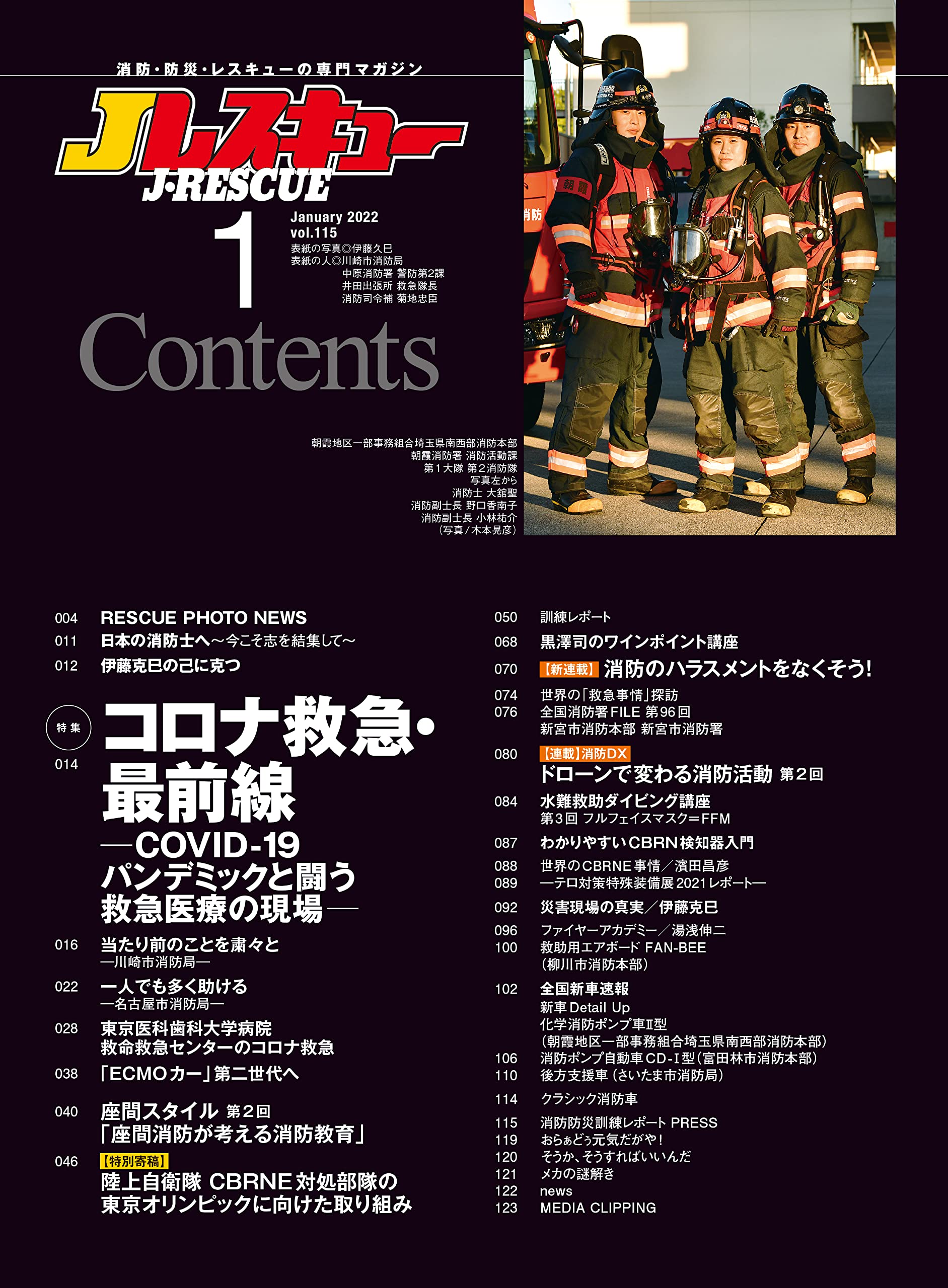 約2年という長期戦を強いられた新型コロナウイルスに対し、救急隊、救急医療現場はどう対処してきたのか?今号では全国でコロナとの闘ってきた消防の救急隊、病院の医師、看護師、救急救命士、技師の方々の奮闘を総力取材! また今秋、全国で実施された各種災害対応訓練の模様、消防のドローン活用事例など盛りだくさんの内容でお届けする。