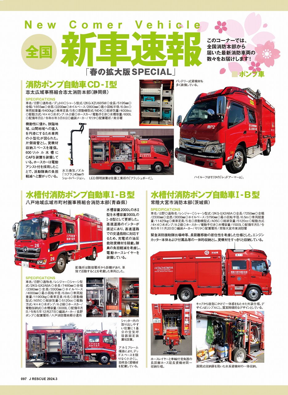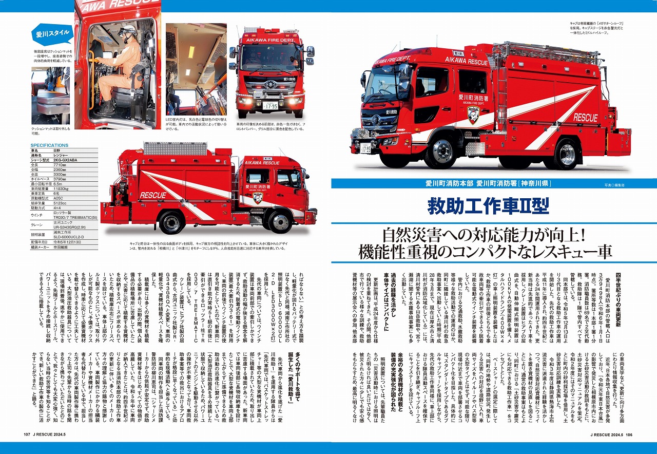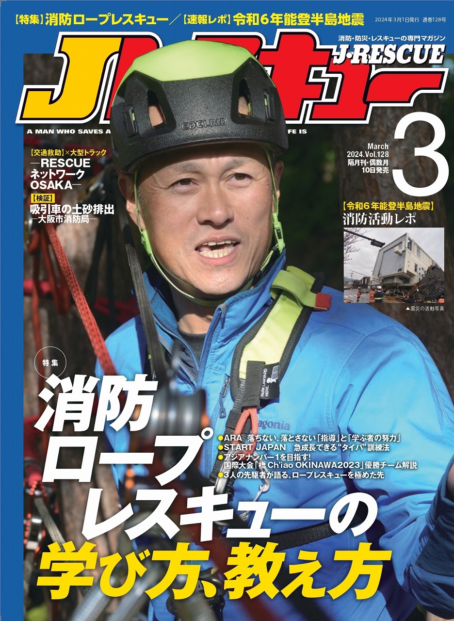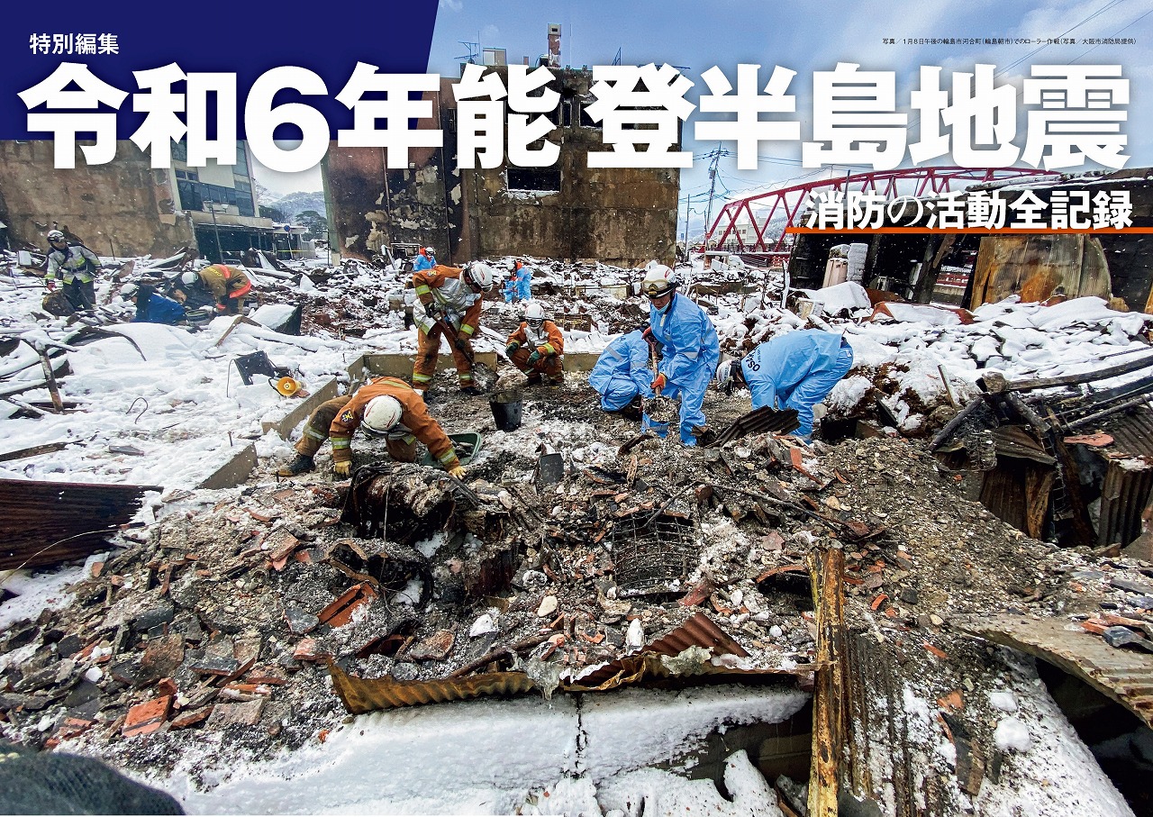 今号は、令和6年1月1日に発生した能登半島地震における、消防の捜索救助活動の全容を徹底取材。1月1日の夕方には即時集結・出動し、2月21日まで52日間の期間、全国19都府県から大部隊が派遣出動し、珠洲市、輪島市、能登町、穴水町で行った消防活動について「緊急消防援助隊」の活動をクローズアップし、初動の進出の困難性、現場活動における安否確認、倒壊家屋や土砂災害現場の捜索状況について取材。統括指揮支援隊長をはじめ、各部隊の隊長が語る被災直後の混乱、活動戦略を記録した永久保存版の活動ドキュメントとなっています。